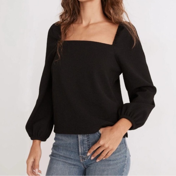 MADEWELL Crepe Square-Neck Puff-Sleeve Top Black Sz XL NWT