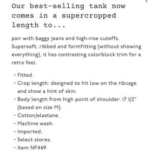 MADEWELL Crop Tank Women XS Supima Rib Sleeveless Top NEW Cotton Stretch NF469