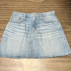 Madewell brand light-wash Rigid denim A-line skirt with raw hem in new like condition no tags. 100% cotton