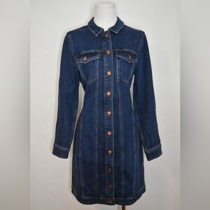 MADEWELL Denim Seamed Button-Front mini Dress long sleeve
