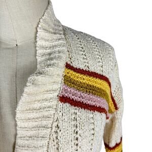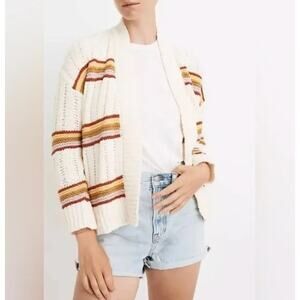 Diaz striped open cardigan sweater from Madewell in size XXS (fits oversized, mannequin is a 6 for reference). There's some wear to the collar as shown (it doesn't lay flat) otherwise great used condition.