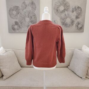 FM36 (tags: pullover, knit, knitted, puff sleeve, blouson sleeve, crop, boxy, fall, autumn, winter, terra cotta, orange, red, women's size medium)