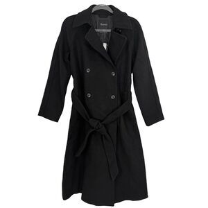 MADEWELL Double-Breasted Trench Coat XS True Black Wool Blend Long Belted NWT