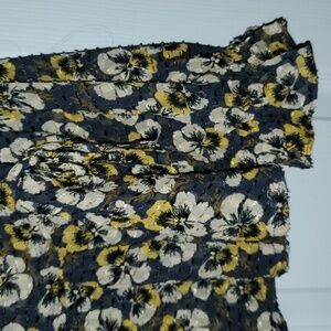 In the prettiest textured pansy print, this feminine top has ruffled sleeves and drawstrings at the waist so you can cinch rhem for a totally customizable fit.
