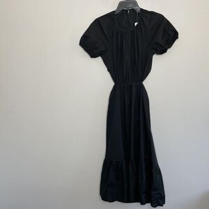 MADEWELL Dress Womens 00 Open-Back Cutout Cotton Poplin NEW Black Midi BG397