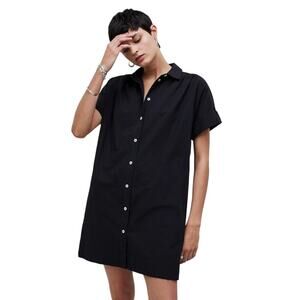 MADEWELL Dress XS Black Kiera Shirt-Dress Classic Summer Work Boxy MSRP $110