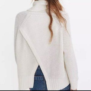 A cozy turtleneck sweater with a cool crossover back detail (show a peek of layers underneath or wear it solo to flash a little skin). Breathable and all-natural, it's made of 70 percent cotton and 30 percent merino wool yarn.
