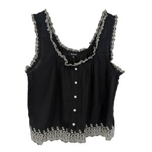 MADEWELL Embroidered Scalloped Tank L Jet Black Button Up Scoop Neck NWT B2