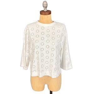 MADEWELL Embroidered Wide-Sleeve Boxy Tee XL White Crewneck Floral NEW B76