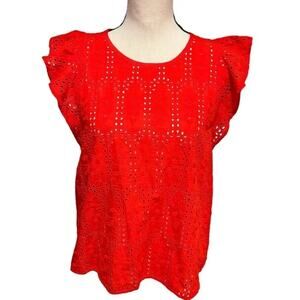 MADEWELL Eyelet Crewneck Flutter-Sleeve Top Size S NWOT