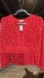 Red printed woven (100% Polyester). Top. Long sleeves. V-neckline. Exposed front button down placket.
