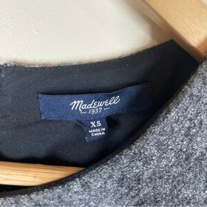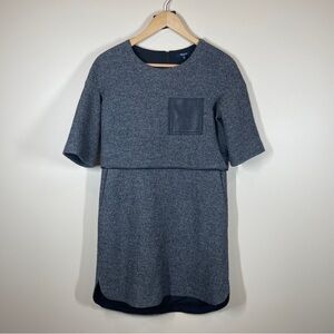 MADEWELL Gray Wool and Leather Dress XS Short Sleeve Mini Length Pocket