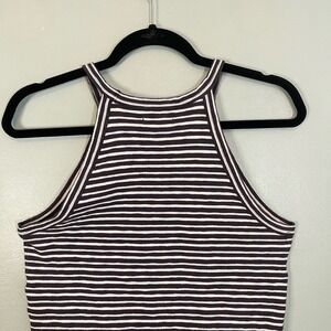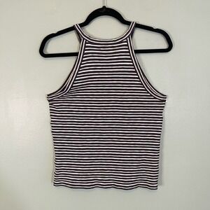 MADEWELL Halter Top Womens Small Stripe Crop Sleeveless Pullover Top Black White
