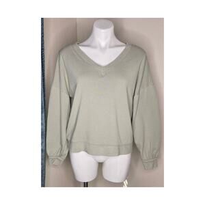 Elevate your casual style with this MADEWELL Hemp-Cotton V-Neck Sweatshirt in size Small! The 'Forgotten Landscape' design adds a touch of uniqueness to your wardrobe.
