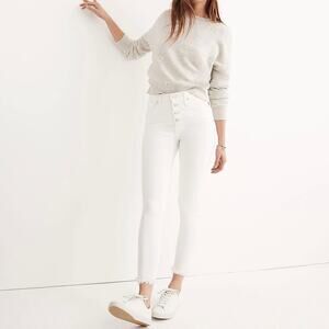 MADEWELL High Rise Button Fly Skinny Crop Jeans White 28