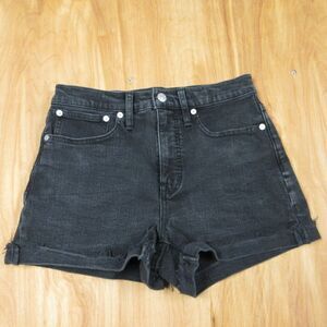 MADEWELL High Rise Denim Shorts Sz 25 (27) Frayed Cuffed Hem Washed Black Jeans