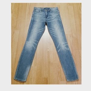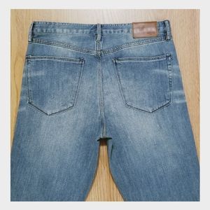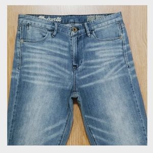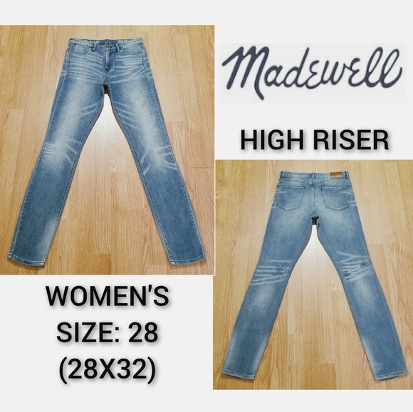 Pre-owned women's MADEWELL High Riser jeans, in good condition/very clean. Classic 5-pocket. Zipper closure. Distressed. Soft & stretchy material - 88% cotton/8% polyester/4% elastane.