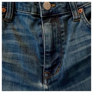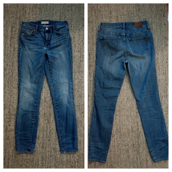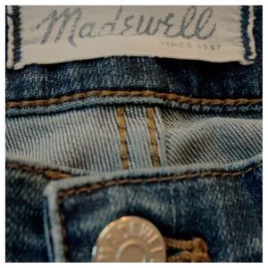 Medium wash jeans. High waist. Zip fly front. Distressed. Gently worn. Overall good condition. Comes with Madewell bag.