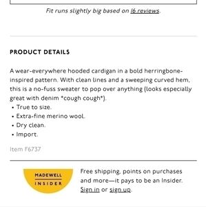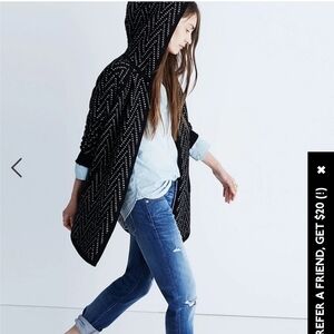 MADEWELL Hooded Herringbone Cardigan Sweater in Black, sz XS