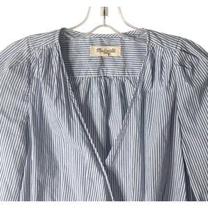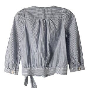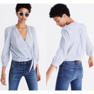 MADEWELL Indigo Blue + White Stripe Wrap-Front 3/4 Length Sleeve Blouse Size XXS