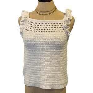 MADEWELL Ivory Knit Ruffle Sweater 100% Cotton Top Shirt Women size S Boho