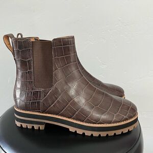 MADEWELL Ivy Lugsole Chelsea Leather Boots Croc embossed Size 7.5 New