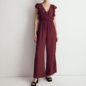 MADEWELL Jacquard Deep-V Burgundy Ruffled Jumpsuit Size Medium