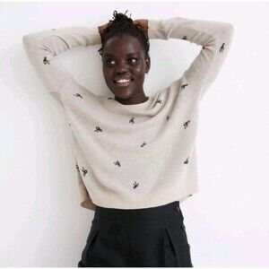 The MADEWELL Jacquard Pullover Bow Sweater in Neutral is a stylish and versatile piece perfect for travel or casual occasions. In size 1X, this sweater features a chic bow accent, making it a perfect addition to your wardrobe. Made from a luxurious blend of polyester, polyamide, viscose, and cashmere, this knit sweater offers a comfortable and relaxed fit. The beige color adds a touch of elegance, while the pullover style makes it easy to wear. Upgrade your outerwear collection with this fashionable and timeless Madewell sweater.