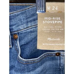 These Madewell ladies jeans in size 24 feature a high-rise skinny fit with a frayed hem, made from stretch denim in a classic blue color. They have a zip and button closure, a 5-pocket design, and are machine washable for easy care. The jeans are comfortable, with a stretch material that moves with you, making them ideal for all seasons. They are styled with a regular fit and come with belt loops, perfect for everyday wear. With a blend of polyester, spandex, and cotton, these Madewell jeans are a fashionable and versatile addition to any wardrobe.