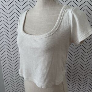 MADEWELL LIGHTHOUSE SOFT SQUARE-SCOOP NECKLINE WESTVILLE CROP TEE TOP Sz M