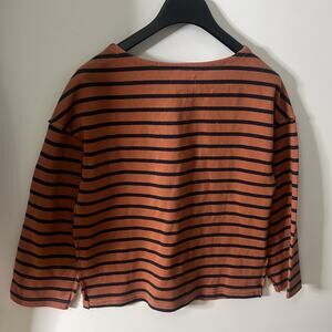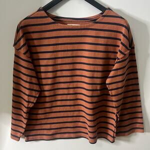 MADEWELL LUXE LONGSLEEVE TEE IN CASLER STRIPE RUST ORANGE NAVY BLUE SIZE S