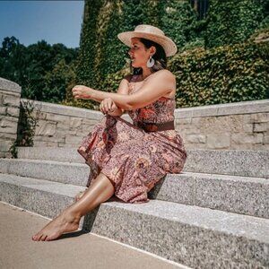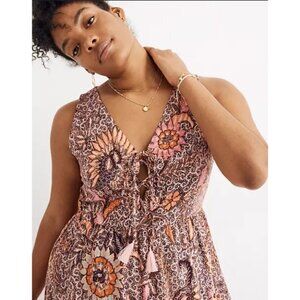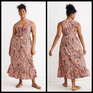 💕MADEWELL💕 Lace-Up Ruffle-Hem Midi Dress ~ Bali Blooms Print 10 (Regular Fit)