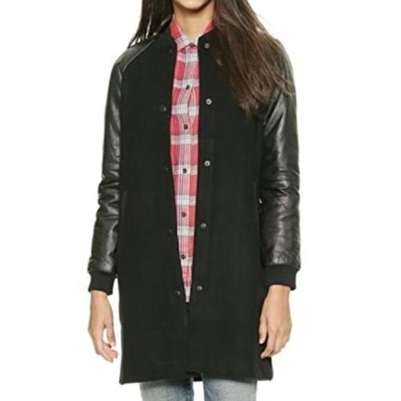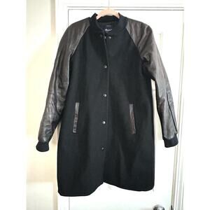 MADEWELL Leather Sleeve Wool Varsity Bomber Mid-length Jacket Coat Women’s Sz 10