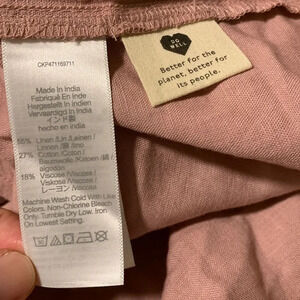 MADEWELL Linen Blend V-Neck Button Front Mini Dress in Antique Coral