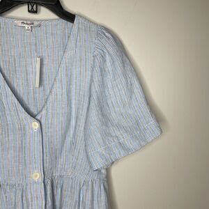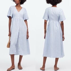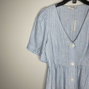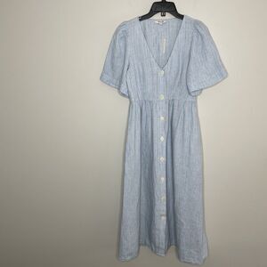 MADEWELL Linen Midi Dress Women XS Blue Stripe NEW Button Front Pockets NQ632