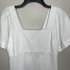 MADEWELL Linen Mini Dress Women 6 White Square Neck Cutout NP764