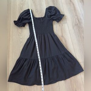 This elegant black dress features stylish puff sleeves and a flattering silhouette. Perfect for any occasion, it combines comfort with chic design.