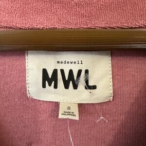 The MadeWell MWL Towel Terry Romper in size S is a stylish and comfortable one-piece outfit perfect for summer. The dusty rose color and drawstring waist add a touch of femininity to the romper, while the terry fabric ensures a cozy feel. With a Henley neckline, short sleeves, and button closure, this romper is ideal for casual wear or travel. The adjustable waist and straight leg design make it a versatile piece for various occasions. Machine washable for easy care, this romper from Madewell is a must-have for your summer wardrobe.