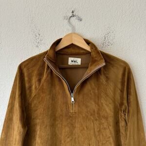 MADEWELL MWL Velour Half Zip Sweatshirt Womens Sz S Brown Pullover Relaxed Fit W11666