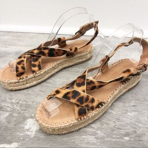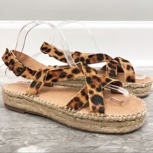 MADEWELL | Malia Espadrille Sandals in Leopard Calf Hair Strappy Platform Size 7