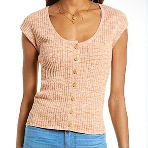 MADEWELL Marled Shaw Button-Front Sweater Tee Marled Tiger Orange Women’s Medium