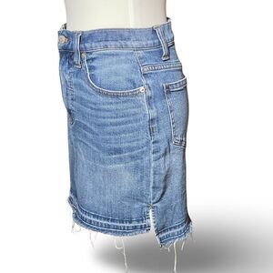 MADEWELL Medium Wash, Distressed Denim Mini Skirt, Side Slits, Size 25