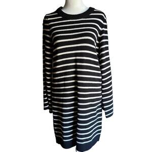 MADEWELL| Merino Wool Button-Sleeve Sweater Dress Black and White Stripe | Small
