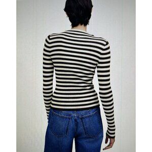 MADEWELL Mock-neck Sweater in Stripe Long Sleeves Dark Carob/Ivory Combo Sz XXS