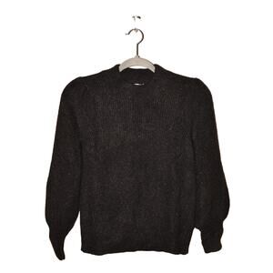 MADEWELL NEW $98 Eaton Puff-Sleeve Pullover Sweater Metallic / True Black XS