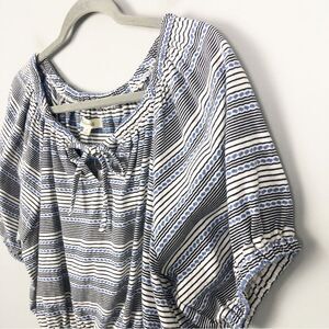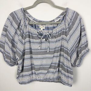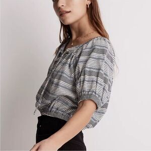 Adorable boho style cropped shirt by Madewell. Puff short sleeves with elastic. Keyhole at chest with tie. Elastic at the bottom hem. Brand NWT! Womens size medium (approx 18” pit to pit and 22” long).