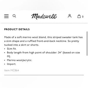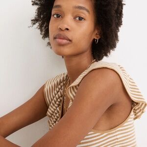 MADEWELL NWOT Belhaven Ruffle Sweater Tank in Stripe in Heather Camel