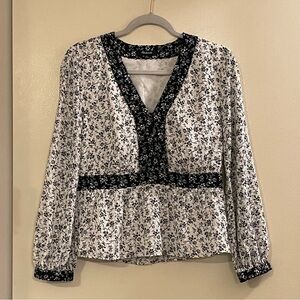 MADEWELL NWOT Clipdot Branch Floral V-Neck Peplum Top in Winter Floral Parchment