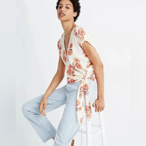 MADEWELL NWOT Dutch Dandelions Sash Tie Wrap Top in Twiggy Parchment