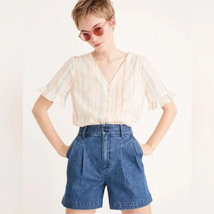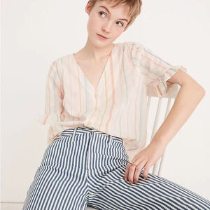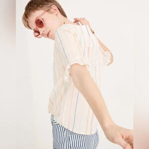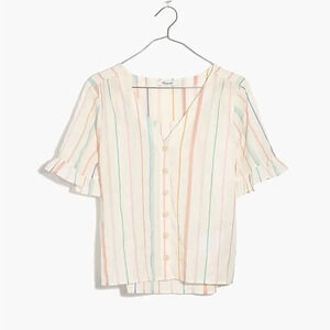 MADEWELL NWOT Rainbow Stripe Village Ruffle Sleeve Shirt